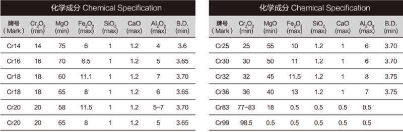 高、結(jié)晶大、高溫體積穩(wěn)定、抗渣性優(yōu)良等特點(diǎn),是制作再結(jié)合及半再結(jié)合電熔鎂鉻磚、鎂鉻質(zhì)搗打料、中間包涂料等產(chǎn)品的理想原料,其制磚后